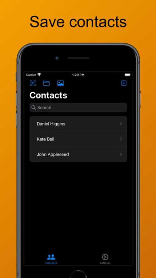 Adding new contacts is a breeze. Simply scan a QR code containing vCard information or import a vCard directly into the app to quickly add new contacts from a variety of sources.