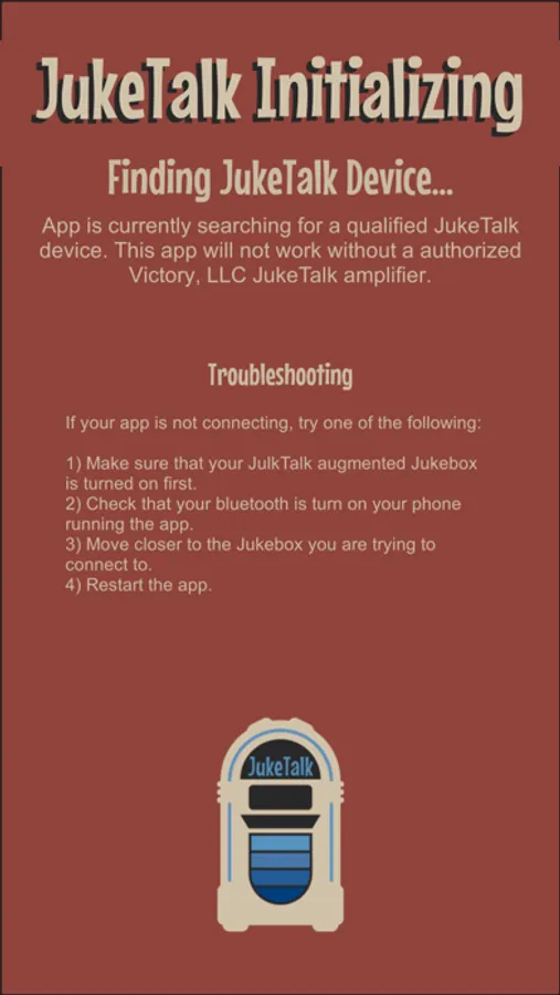 The JukeTalk app provides wireless remote control of Power, Volume, Reject, and Mute from your device.