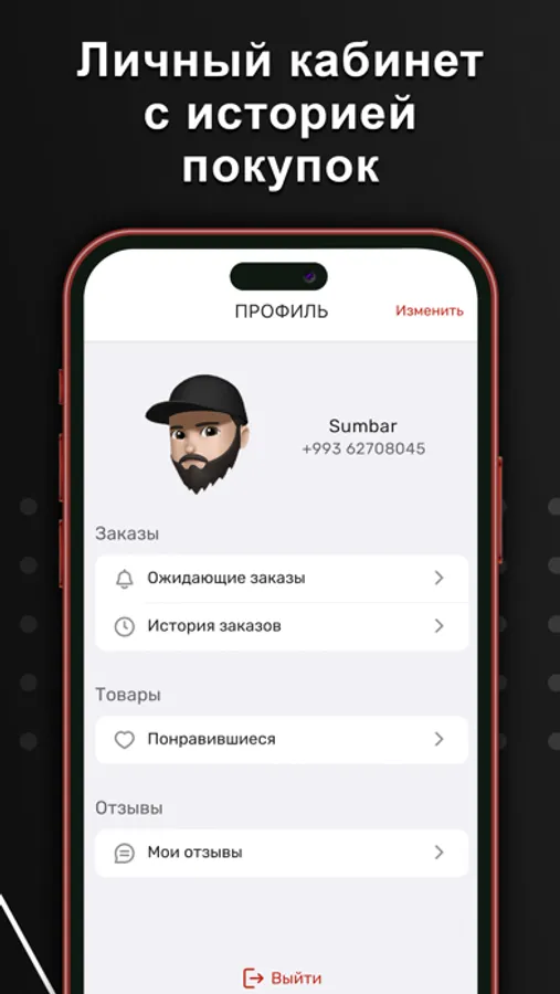 • Профиль с интуитивно понятным интерфейсом для отслеживания своих заказов;