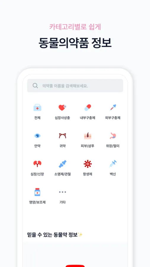 약 200여개의 동물의약품 정보를 쉽고 빠르게 찾아보세요.