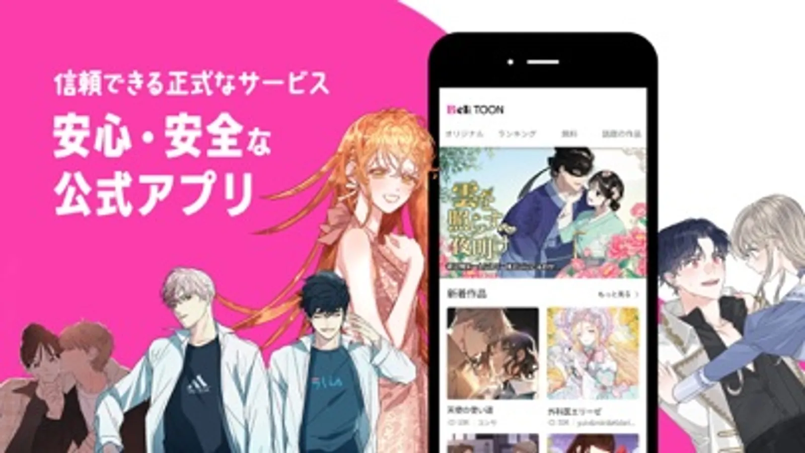 BeLTOONはいつでもどこでも、人気作品からオリジナル作品まで、気軽くに楽しめる女性向けマンガアプリです。