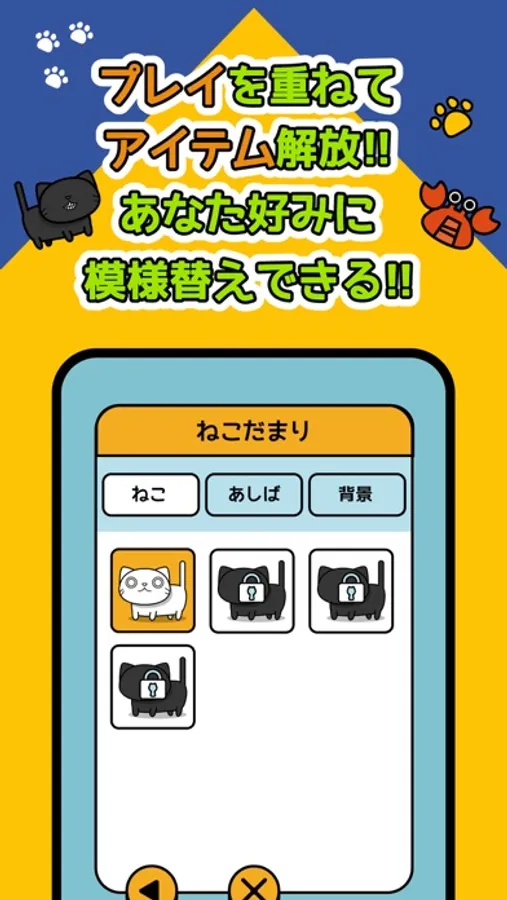 Change the type of cat and its foothold!・・・You can design your own game with in-game points!