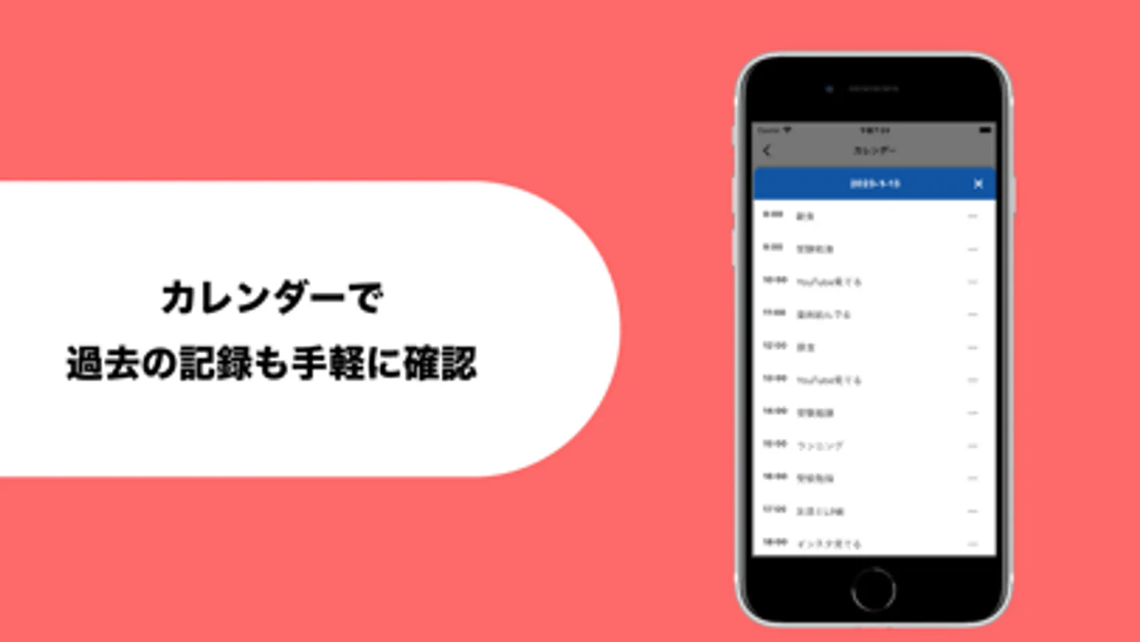 1日の行動をリアルタイムで記録することで予定通りに行動できたのか、実際はどんな行動を取っていたのかを振り返ることができます。
