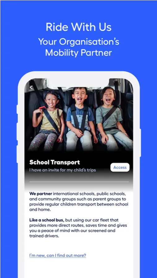 Ride with us! We provide mobility services for schools, workplaces, organisations and events, with our car fleet and driver selection.