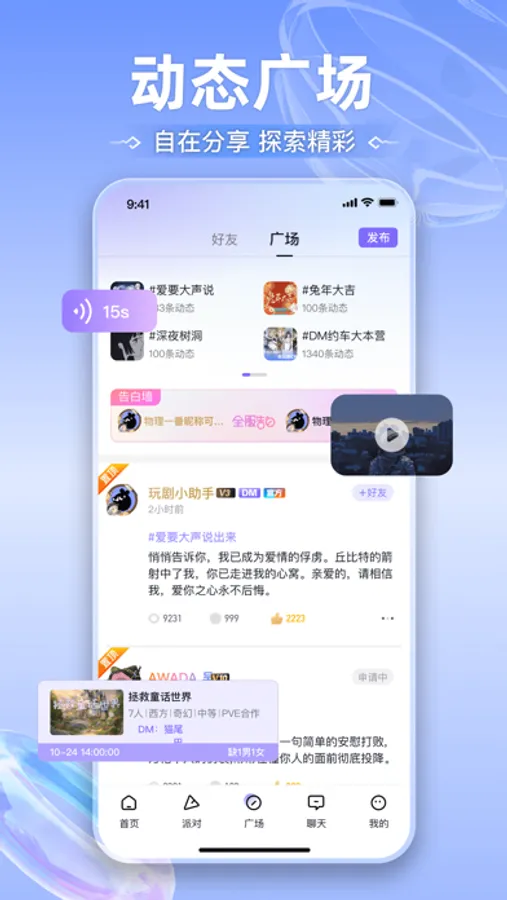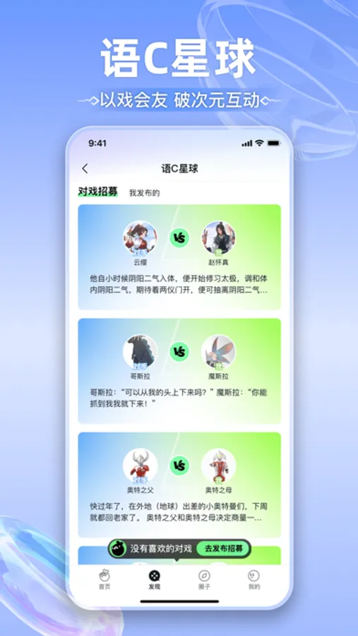 玩剧CP 是一个让你能够通过标签,有趣的声音快速认识新朋友的平台。