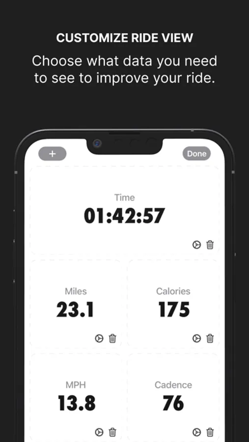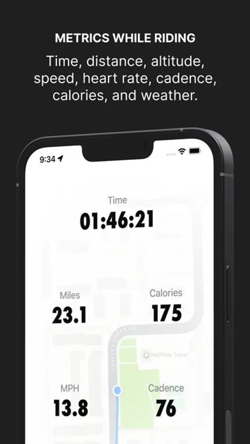 While riding, your time, distance, altitude, speed, heart rate, cadence, calories, and weather data get displayed on an easy-to-read, customizable display.