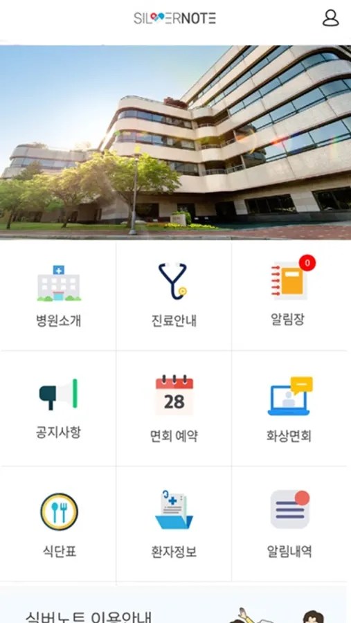 병원소개, 알림장, 간병교육영상, 각종 치료 등을 받고 계시는 우리 부모님만의 정보를
