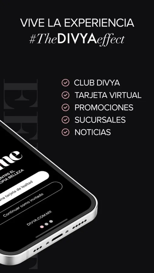 Descarga la app de divya México, regístrate a nuestro programa de lealtad Club divya, disfruta de tus productos y servicios favoritos y acumula puntos por cada compra que realices. Podrás utilizar tus puntos para obtener descuentos o pagar el total de tu compra.