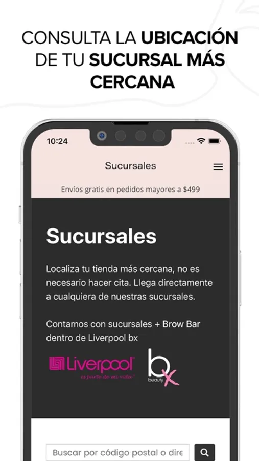 - Consultar la ubicación más cercana de nuestras sucursales de forma automática ingresando tu código postal o una referencia.