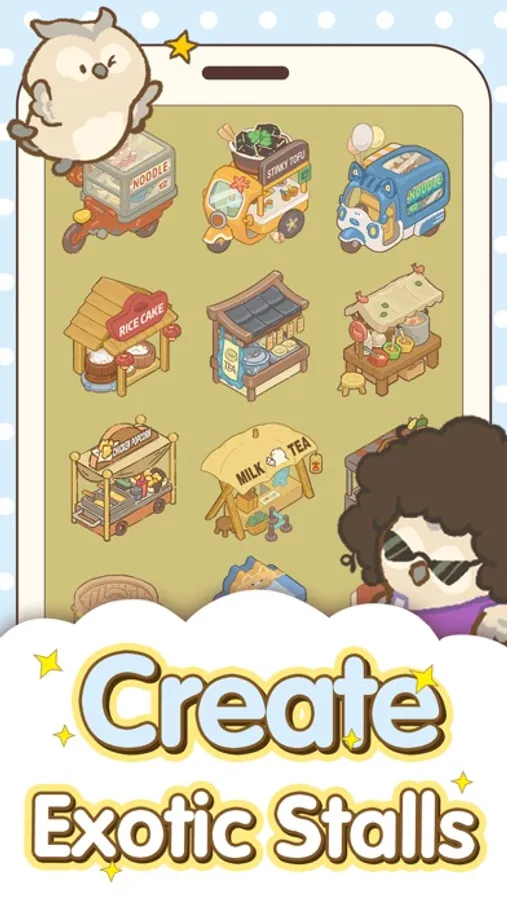 With night falls, the owls called “late sleeper” has just begun their exciting night life at their secret base---Owl Food Bazaar! Unluckily, since the founder mysteriously disappeared, this Food Bazaar is in trouble now. Could you take over this Food Bazaar and make it become prosperous again?