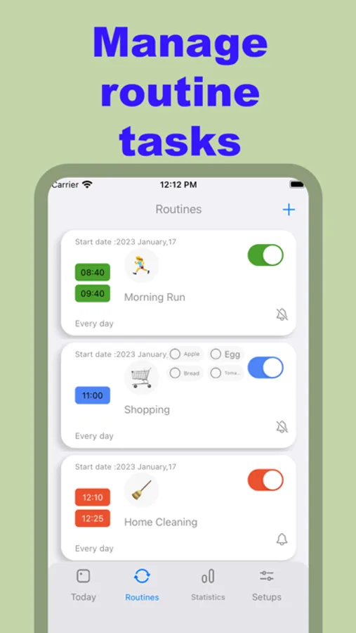 * Add your routines, events or to-do list.