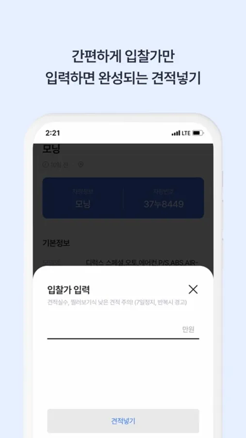 소비자가 등록한 매물을 쉽게 확인하고, 간단하게 입찰가만 입력하여