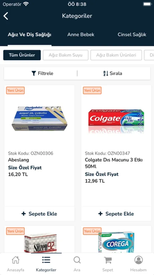 * Ürün kategorilerinde filtreleme yapabilirsiniz