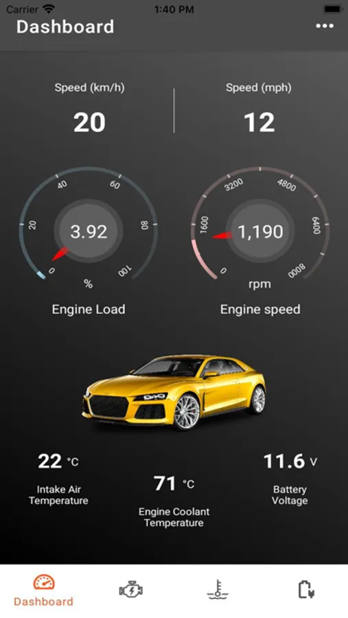 • Real-time dashboard display with fully customizable gauges. Create your own dashboards with the gauges that you want to see.