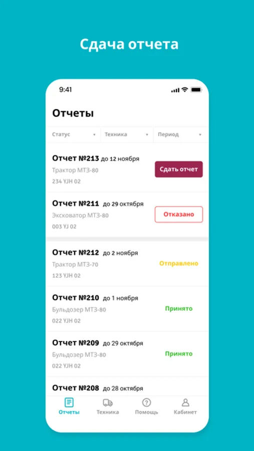 Приложение позволяет отслеживать все отчеты и их сроки, назначенные лизингодателем, а главное самостоятельно сдавать их.