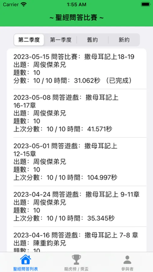 手機版聖經問答比賽,每週更新題目。註冊用戶,更可免費參與每週比賽活動,較量龍虎榜。其他讀者,亦可於下週一比賽結束後,在「伊甸園地」玩同一份網頁版題目。