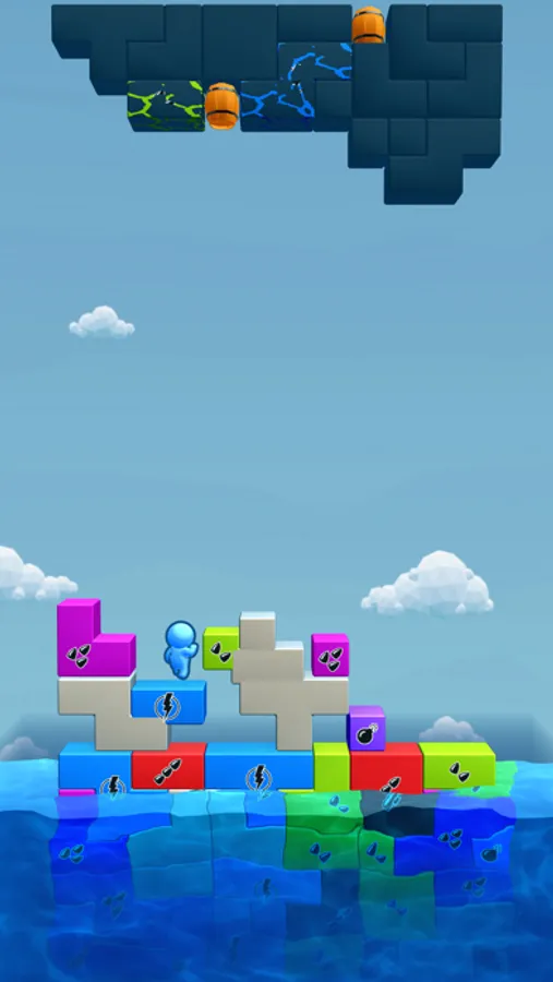The power of your weapon will change depending on the color of the brick you are standing on. We wouldn't recommend standing on the same brick for a long time. It will be to your advantage to be in a high place as the waters rise!