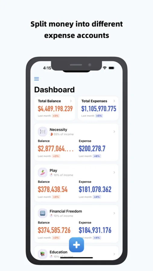 Split utilizes the Six Jars Money Management System. This app is designed to help you take control of your finances and achieve financial freedom.