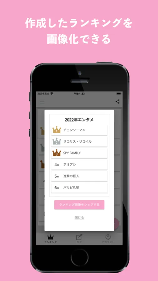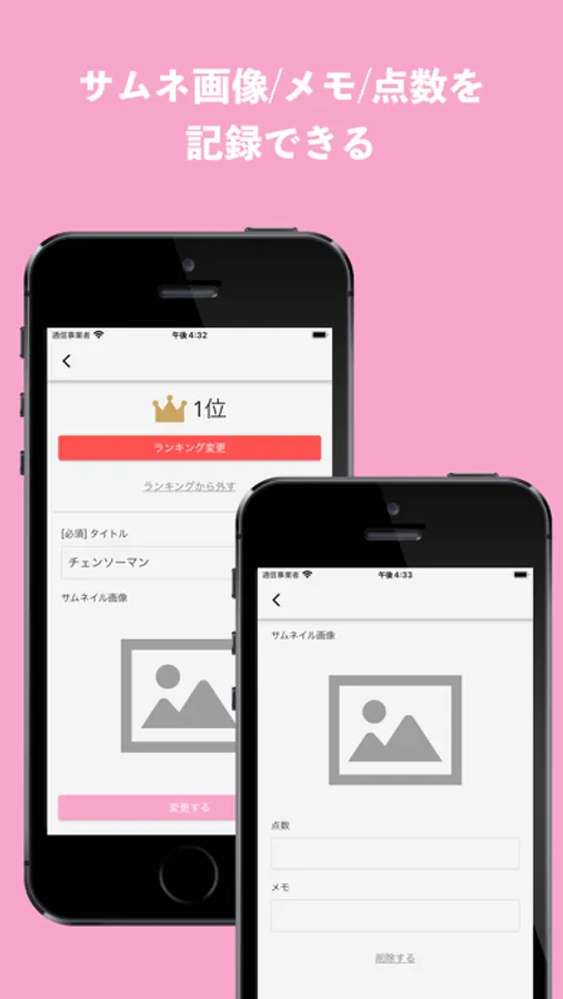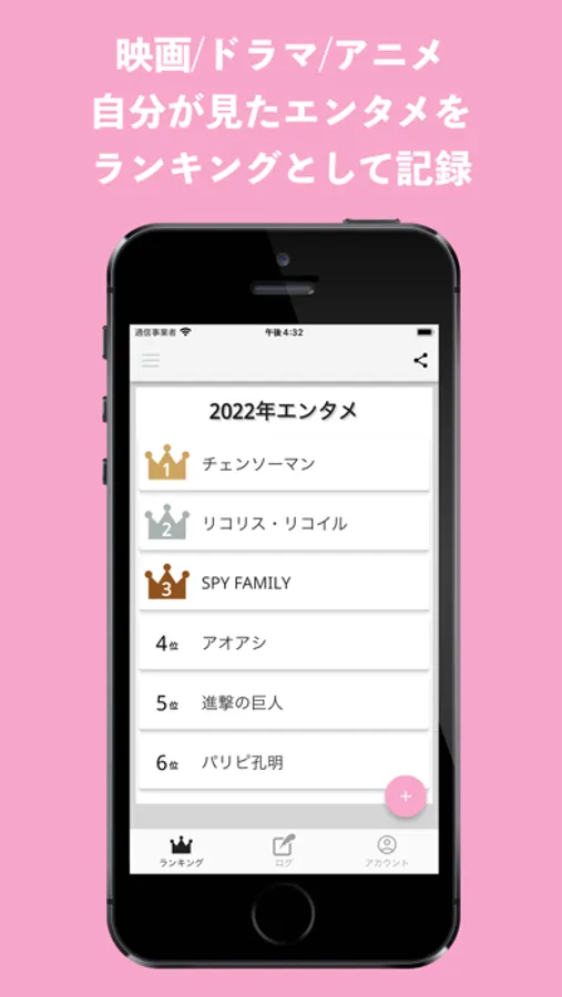 自分が見たエンタメを記録して、ランキングをつけることができるアプリです。