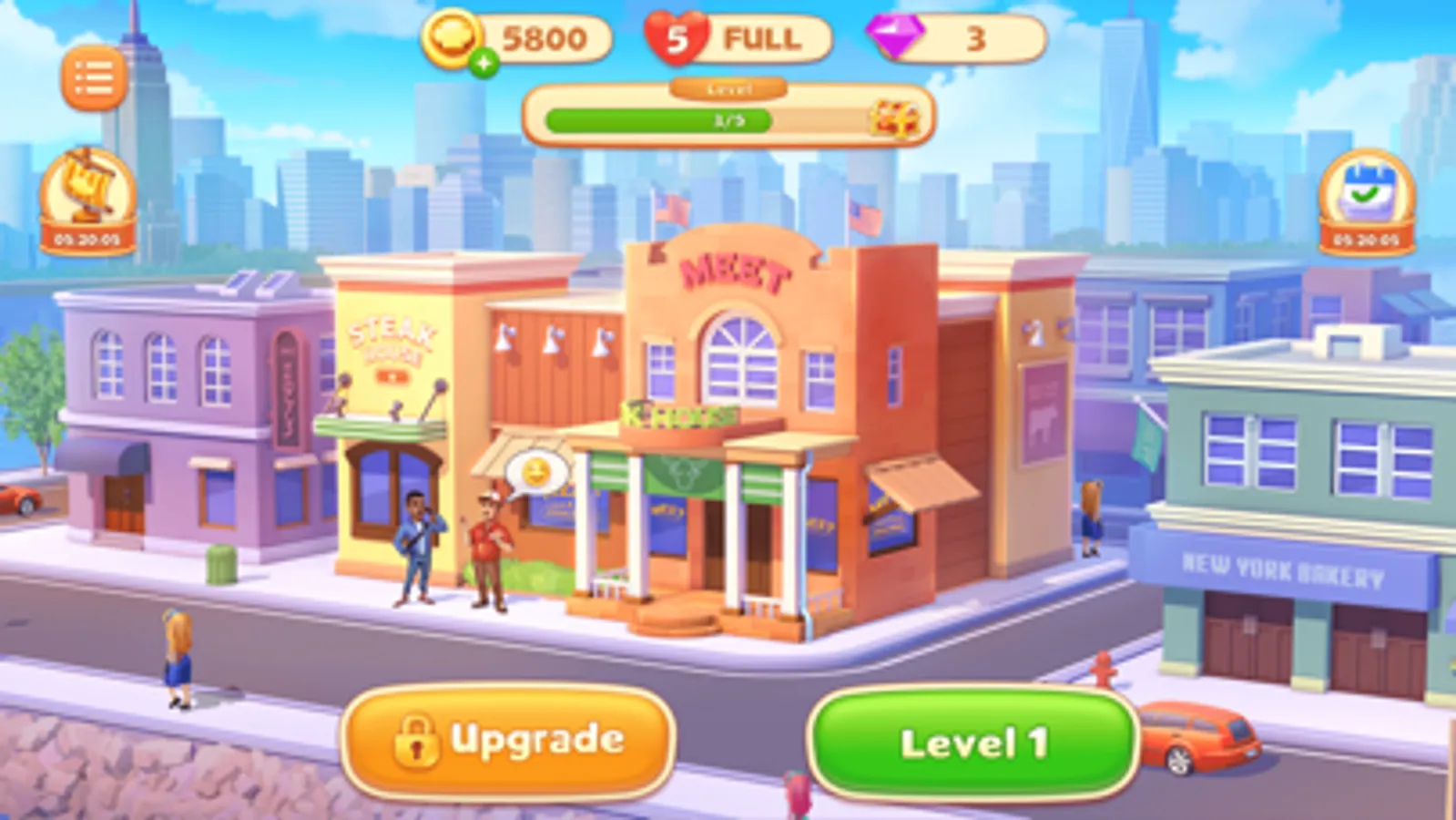 If you are a cooking enthusiast, please enjoy various food in Mary's Cooking: steaks, hamburgers, pizza…… as well as unlock kinds of restaurants: Meet Steakhouse, Super Burger, Mr. Lobster…The more levels you play, the more food types and restaurant styles you will unlock!