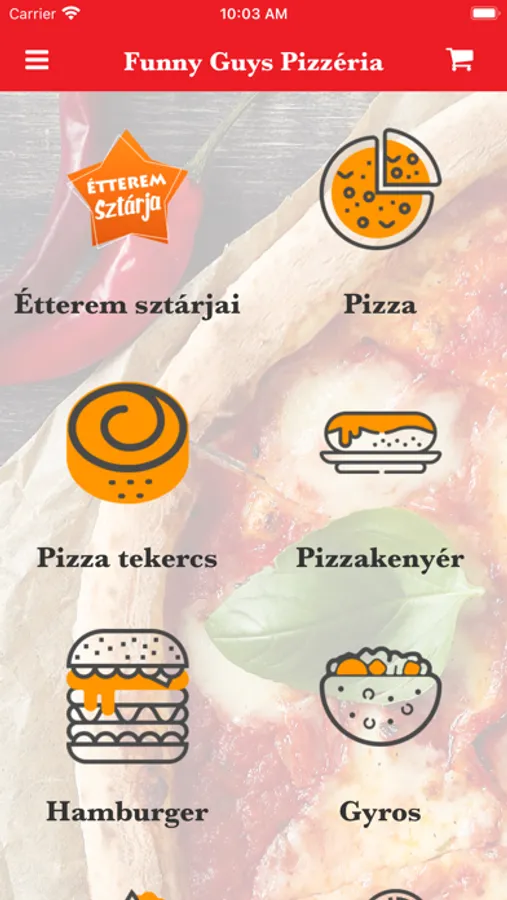 A Funny Guys Pizzéria Érdről szállítja házhoz mennyei ételeit. Kínálatunkban szerepel 24cm-es, 30cm-es, 40cm-es pizza, pizza tekercs, pizzakenyér, hamburger, gyros, burrito, frissensült, halétel, vega étel, köret, gyermek étel, bőségtál, tészta, saláta, édes pizza, palacsinta, desszert, jégkrém és üdítő. Ha kedvet kaptál egy finom ebédhez rendelj online pár kattintással!