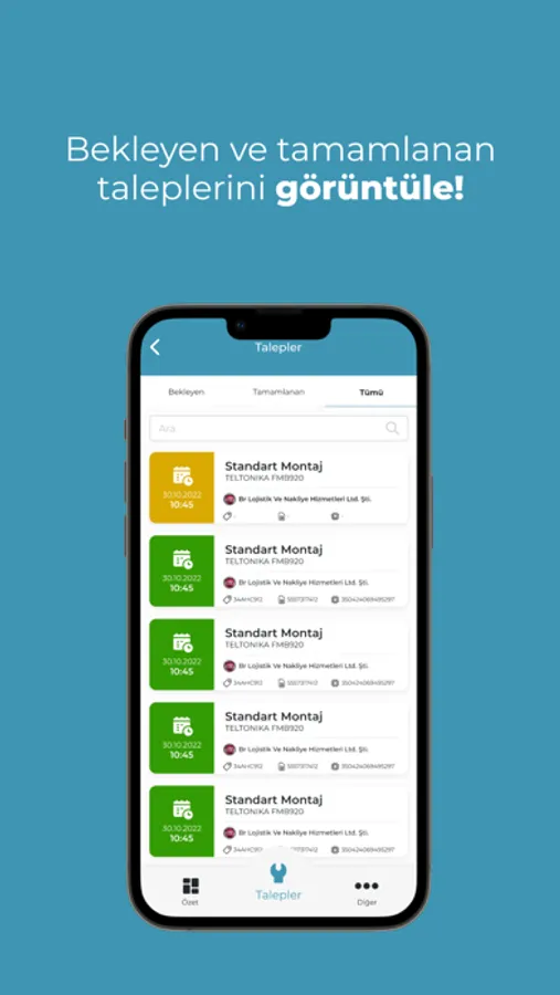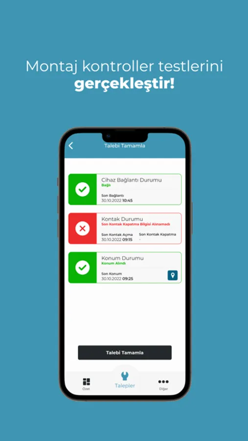Montaj destek servis uygulaması ile, kurumunuza iletilen montaj, demontaj, bakım gibi talepleri anlık takip edebilir, talep yönetimini gerçekleştirebilir ve sürecii uçtan uca sürdürebilirsiniz.