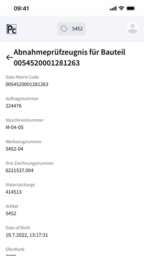 Mit nur einem Scan eines DPM-Barcodes erhalten Sie sofort Zugriff auf alle Informationen zum Herstellungsprozess Ihres Werkteils.