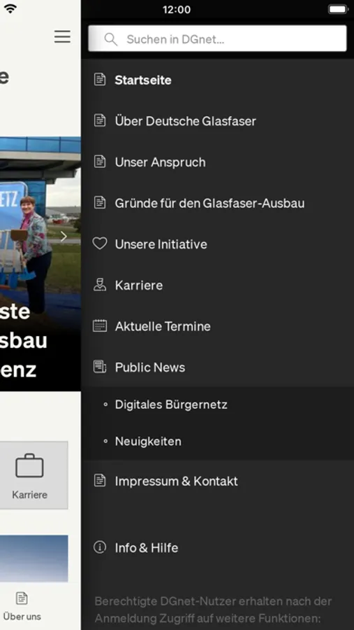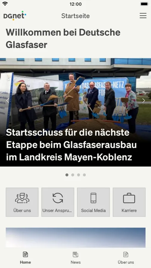 In unserer DGnet App finden Sie Informationen rund um die Unternehmensgruppe Deutsche Glasfaser - von aktuellen News und Pressemitteilungen über spannende Fakten über den Glasfaser Ausbau in den Regionen bis hin zu Einblicken in die Arbeitswelt bei Deutsche Glasfaser.