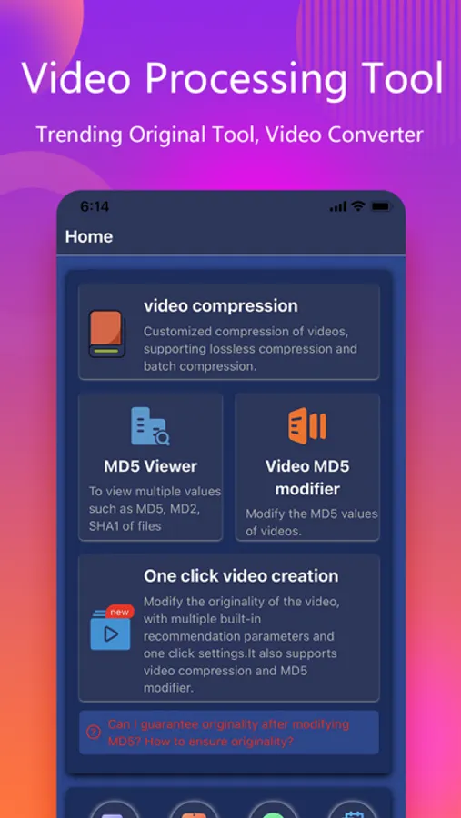It supports batch processing of video files. No complicated editing is required, and the settings are simple. With just one click, videos can be processed in batches to meet the needs of different users. It supports simple modification of the MD5 hash value of videos and video compression/decompression. The software's one-click originality feature is highly welcomed by users, as it allows videos to be quickly processed by adding different effects and setting various parameters, resulting in a complete transformation of the original videos. It is an excellent assistant for short video creators.