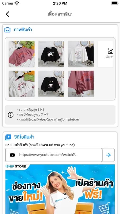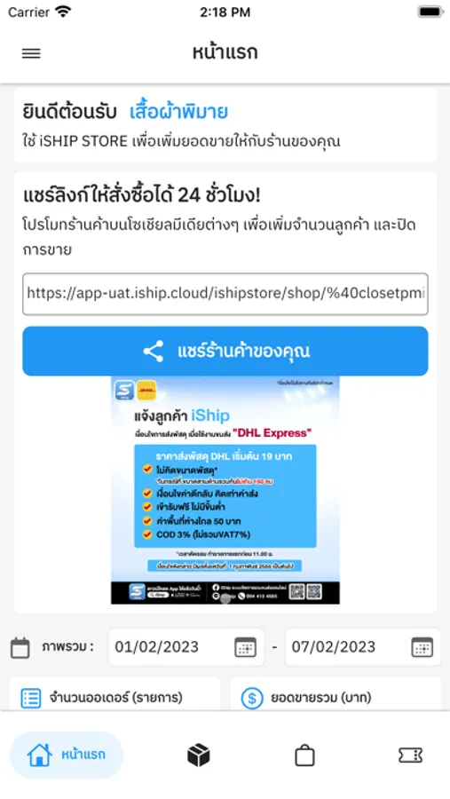 iShip STORE คือระบบจัดการสินค้าและโปรโมทร้านค้าของระบบ iShip ช่วยให้ระบบจัดการร้านค้าออนไลน์ มีแดชบอร์ดสรุปยอดขายทุกวัน เปิดร้านค้าฟรี! ไม่เสียค่า GP ใช้ระบบตรวจสอบสลิปปลอมได้ฟรี! ไม่ต้องเสียเวลาไปตรวจสอบสลิปเอง
