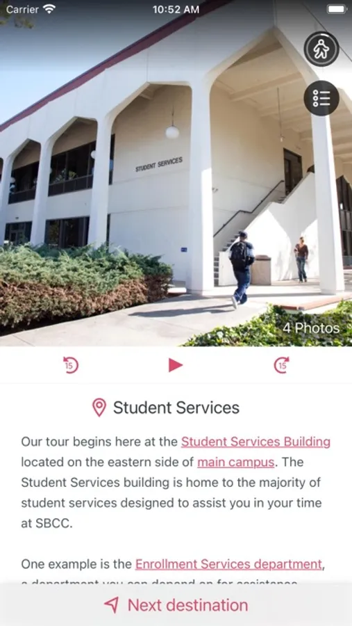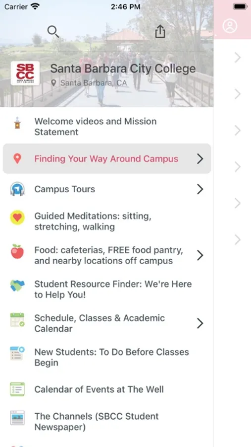 The Santa Barbara City College app provides virtual campus tours, easy access to key campus information and resources, and finding ways around campus using inbuilt wayfinding features.