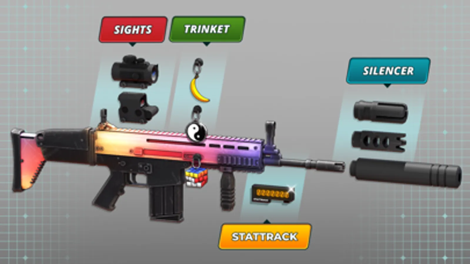 Weapon customization — The more you play with the gun, the more additional modules will be available to you! Use scopes, silencers, skins, trinkets and more to customize your weapons and make them suit your playstyle.