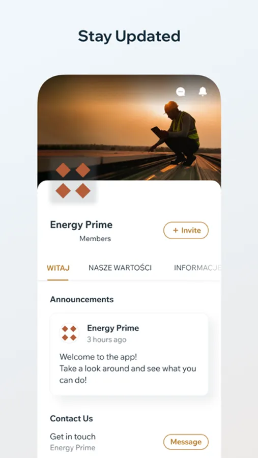 Aplikacja zawiera również pakiet dodatkowych, niedostępnych nigdzie indziej materiałów dotyczących produktów i partnerów biznesowych Energy Prime.