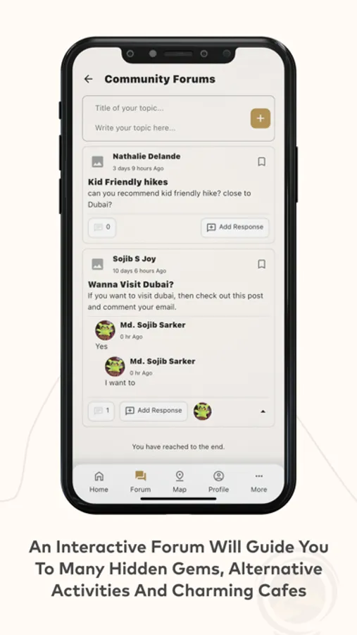 Hikes, restaurants, sightseeing locations, activities and accommodation are organized in lists that allow filtering for your convenience. Each item in the list is provided with punctual information, photos and a link to the interactive map for easy navigation. The interactive map gives you an easy overview of the various things to do around you. All items in the map are color coded and allow you to filter on type of experience. The map can be used for easy navigation to the locations. An open forum allows members to share information, ask questions to like-minded people and arrange meet-ups and make new friends.