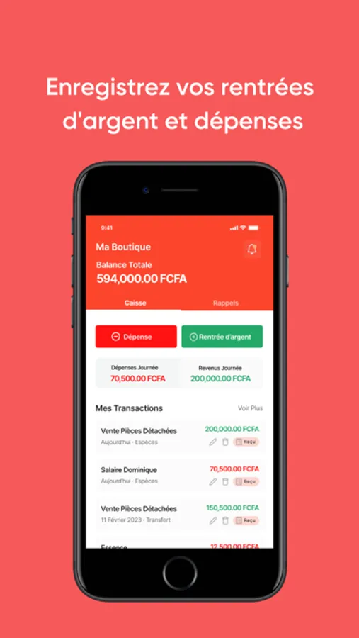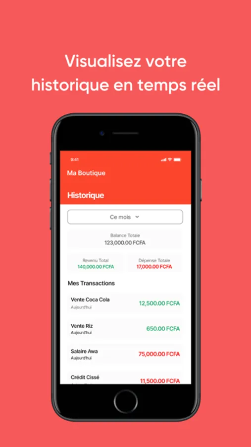 De plus, toutes les factures générées par l'utilisateur seront enregistrées dans la section statistiques/historique de l'application. Dans cette section, l'utilisateur aura une vision claire de l'argent qui a été gagné, dépensé ou qu'il doit payer ou recevoir dans une période sélectionnée !