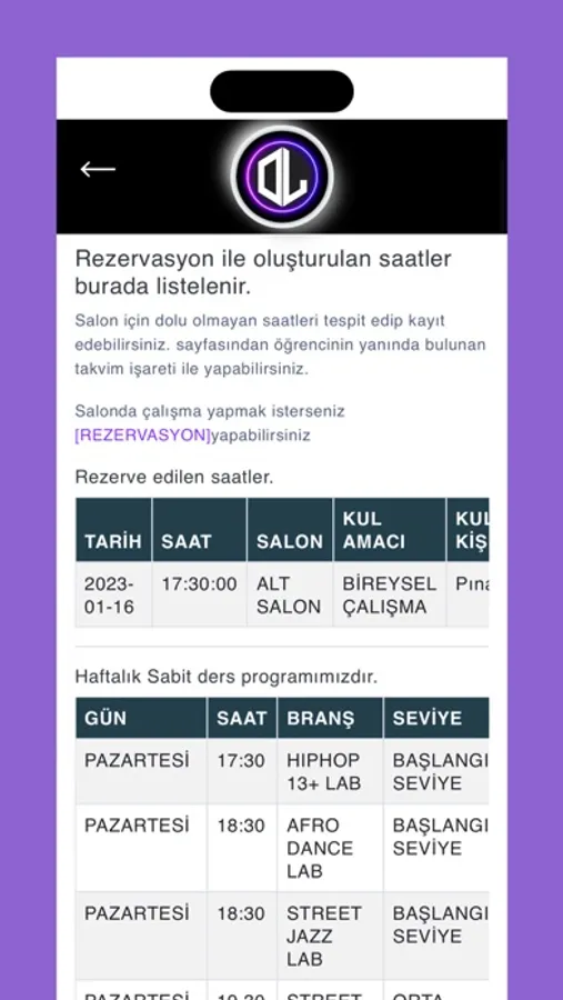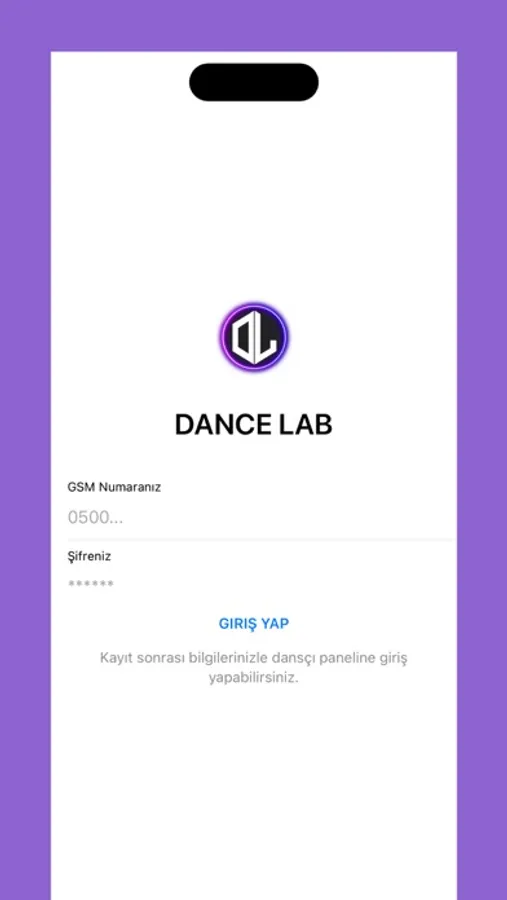 Uygulamamız Dance Lab Dans okulu üyeleri için bir sistemdir.