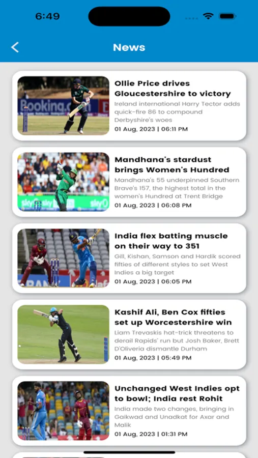 Our app is the ultimate tool for staying up-to-date on all the latest cricket matches, with real-time updates that let you track every ball, every wicket, and every run as they happen. With live scoring and detailed match analysis, you'll never miss a beat, no matter where you are in the world.