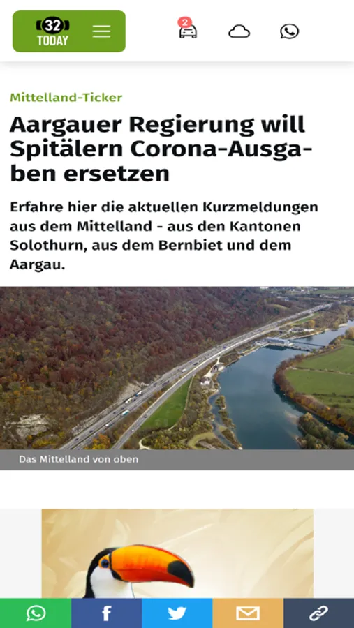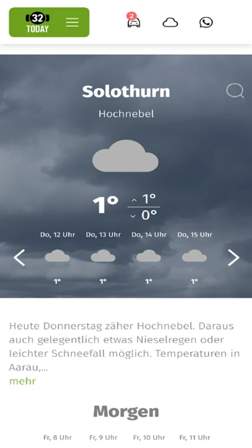 Mit der 32Today News-App hast du das Mittelland im Sack. Die konvergente Newsredaktion bedient dich täglich und rund um die Uhr mit News, Services und Unterhaltung aus dem Mittelland. So bist du immer top informiert, bestens unterhalten und geniesst den aktuellsten Verkehrsservice sowie Wetterprognosen aus deiner Region. Mit 32Today entgeht dir kein Thema, über das das Mittelland spricht. Zudem versorgen wir dich mit den wichtigsten News aus der Schweiz und der Welt.