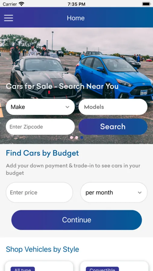 The home page of the app shows multiple vehicles; you can either click on any or enter the down payment you are willing to pay and the app will show the cars accordingly.