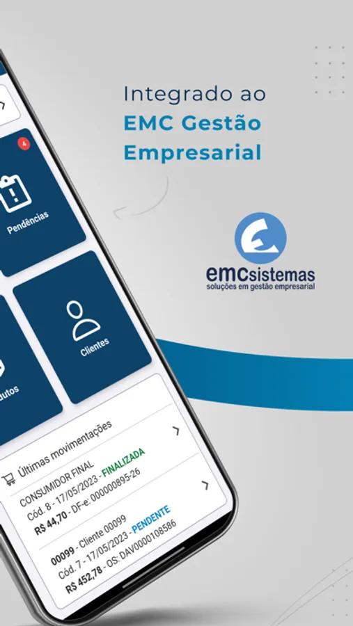 O EMC PDV se comunica com o EMC Gestão Empresarial para obter dados e gravar as vendas em tempo real.
