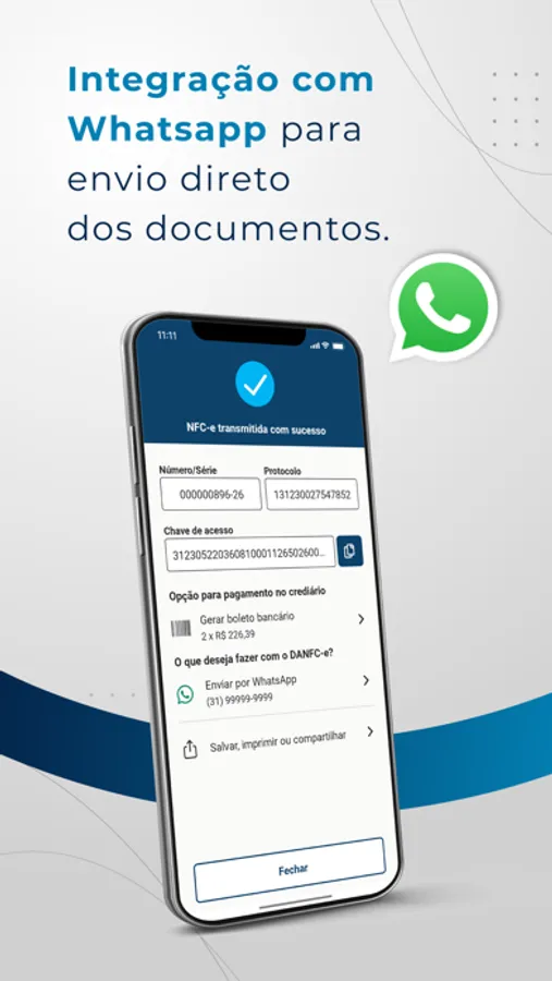 Basta informar o número de telefone do cliente para compartilhar via Whatsapp os DANFC-es documentos auxiliares de venda (DAV), de forma simples e rápida.