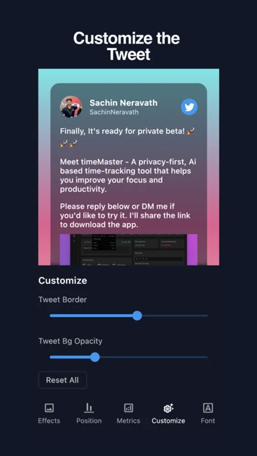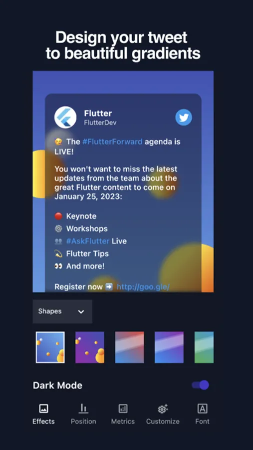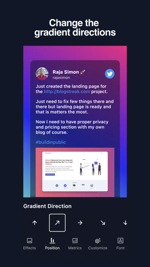 Share your Twitter post to Instagram, LinkedIn, or anywhere in a beautiful gradient image instead of a normal post