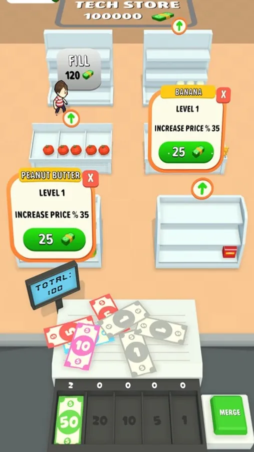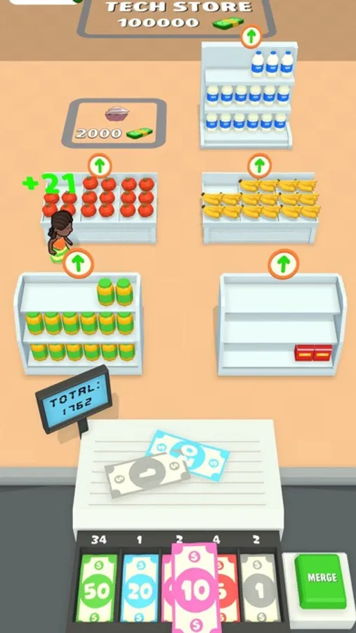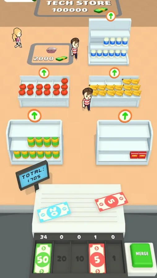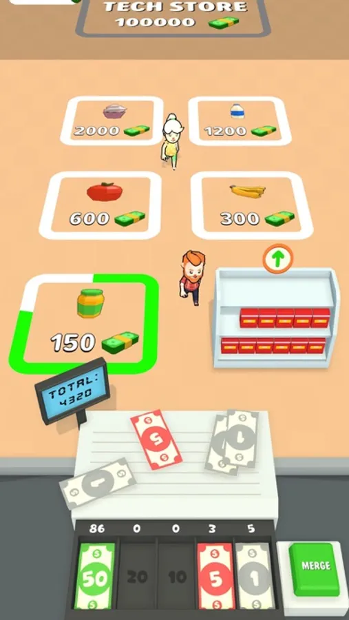 Follow the products in the sections and do not keep your customers waiting! Develop with simple mechanics, get rich and keep playing for brand new items!