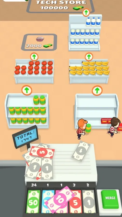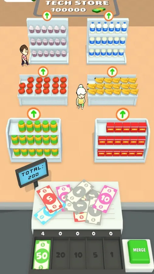 With the easy game mechanics of Cashier Idle, you will experience the excitement of improving your store and catching up with the increasing number of customers!
