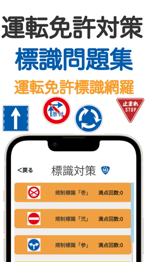運転免許対策や「標識」を覚えたい方にピッタリなアプリです。