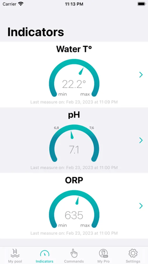 your bathing water in real time (chlorine, pH, temperature, etc.).