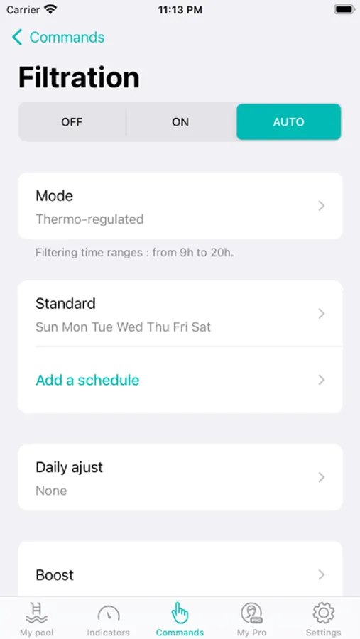 Optimised filtration times, controlled treatment and programming adapted to your use (heat pump, etc.).