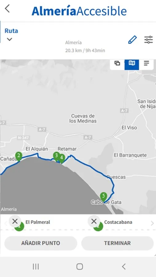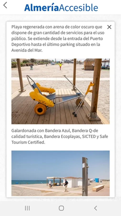 A partir de la geolocalización de puntos de accesibilidad de las playas de la costa almeriense, se crea una aplicación que contiene recursos de interés cultural, turístico y servicios de utilidad en torno a la digitalización de lugares habilitados para la accesibilidad de los usuarios.