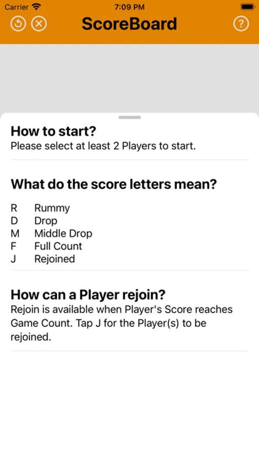 4) Select R for Rummy, D for Drop, M for Middle Drop and F for Full Count