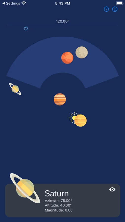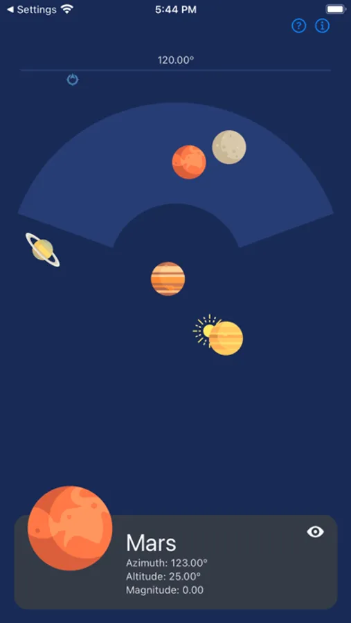 - It indicates the Azimuth, Altitude, and Magnitude of each planet.